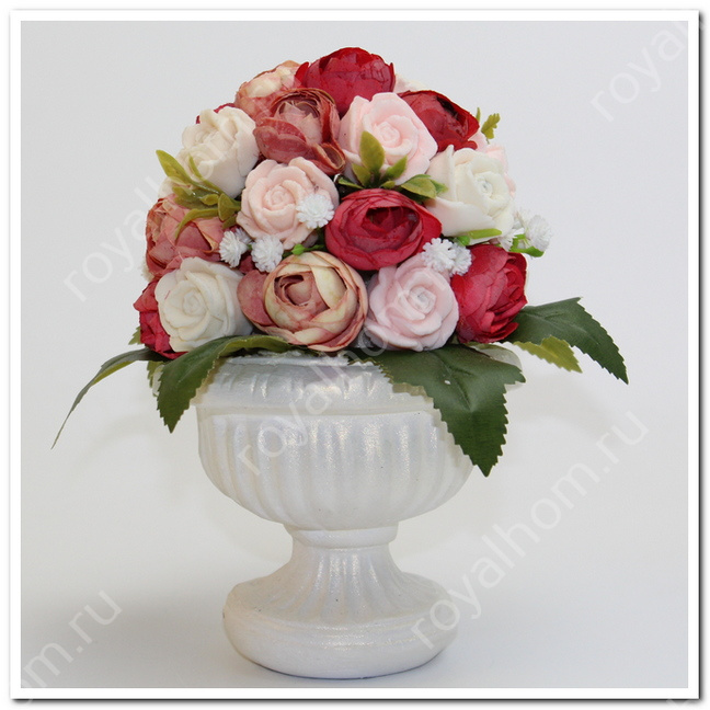 Букеты из мыла и цветов – это самое новейшее изобретение в арома-декоре для дома. 10 лет назад, впервые такие композиции изготавливались для дворцов арабских шейхов, для создания царственного величия декора дворцов. Композиции изготавливались из мыла, делались вручную, без применения высокотехнологичного оборудования. В производстве использовали арабские натуральные масла, для придания декору приятного аромата, который сохранялся на протяжении длительного времени. При этом композиции не требовали особого ухода, наполняли помещения необычайным ароматом и свежестью.