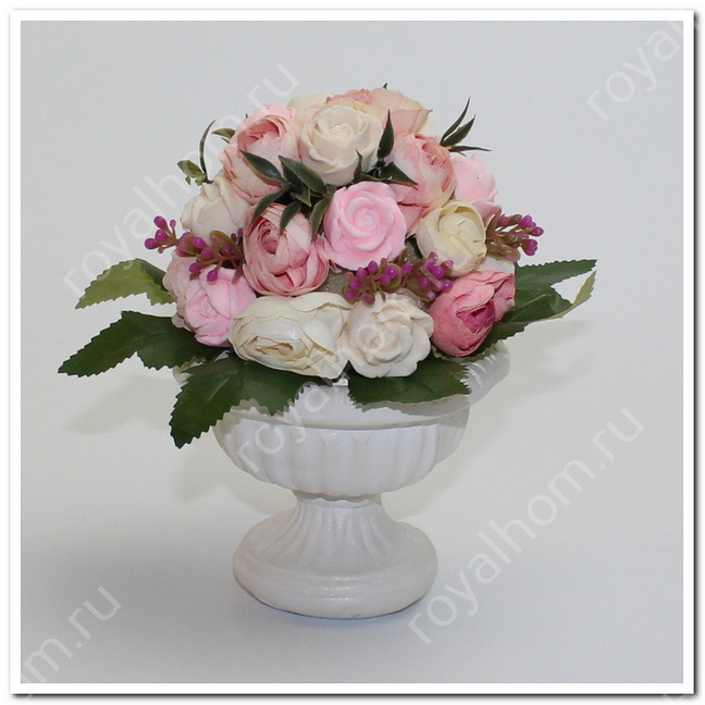 Букеты из мыла и цветов – это самое новейшее изобретение в арома-декоре для дома. 10 лет назад, впервые такие композиции изготавливались для дворцов арабских шейхов, для создания царственного величия декора дворцов. Композиции изготавливались из мыла, делались вручную, без применения высокотехнологичного оборудования. В производстве использовали арабские натуральные масла, для придания декору приятного аромата, который сохранялся на протяжении длительного времени. При этом композиции не требовали особого ухода, наполняли помещения необычайным ароматом и свежестью.