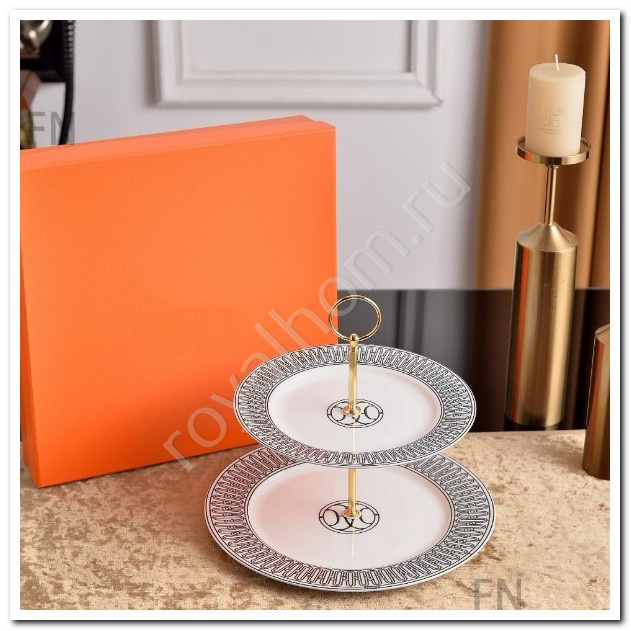 Элегантная двухярусная фруктовница из премиального фарфора с черным брендовым рисунком Hermes – воплощение утончённого вкуса и роскоши. Этот стильный аксессуар станет центральным элементом сервировки вашего стола и подчеркнёт статус любого торжества. Идеально подходит в качестве эксклюзивного подарка или для создания изысканной атмосферы в вашем доме. Упакована в фирменную подарочную коробку Hermes, которая добавляет изысканности и делает изделие по-настоящему уникальным.