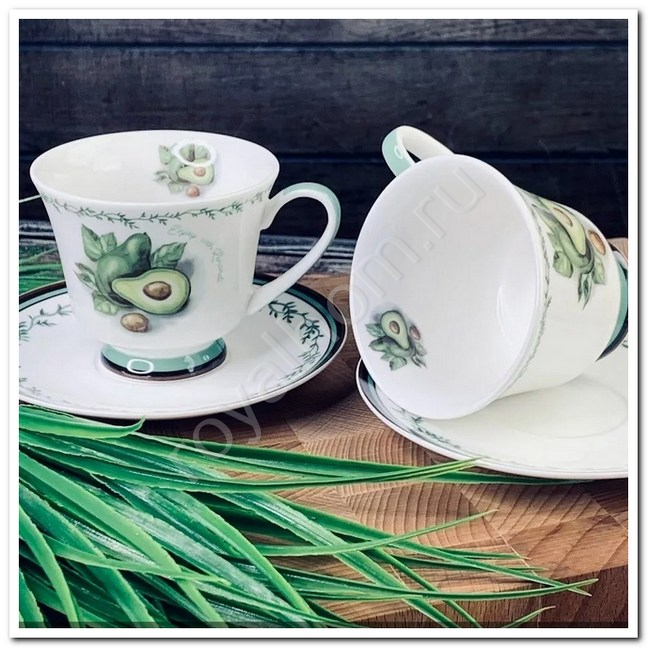 Коллекция «АВОКАДО» выполнена из белого фарфора. Стильный и модный дизайн с авокадо насыщенного зеленого цвета, флористическая обводка. Коллекция состоит из тарелок, овальных блюд, салатников, чайных и кофейных наборов