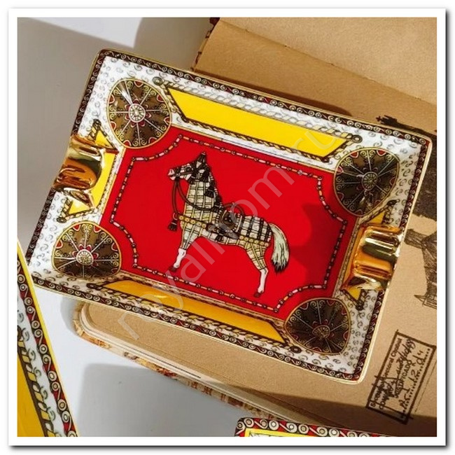 Эта роскошная пепельница с дизайном от ведущих брендов станет настоящим украшением вашего интерьера. Изящный рисунок в виде лошади на насыщенном красном фоне, обрамлённый золотыми и декоративными элементами, придает изделию аристократическую изысканность. Великолепное сочетание классического стиля и современных акцентов делает её не просто функциональной вещью, а истинным произведением искусства. Идеальный аксессуар для тех, кто ценит высокое качество и стремится к утончённому комфорту в каждой детали. Подчеркните свой статус с этим эксклюзивным предметом!
