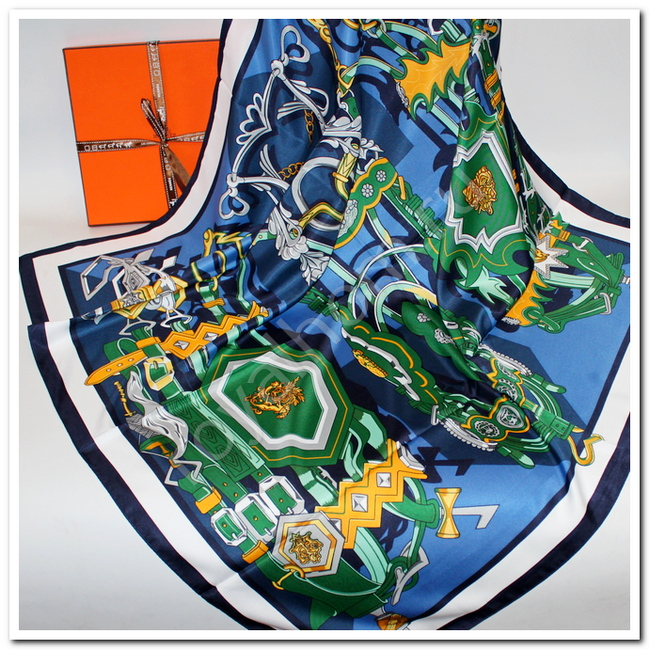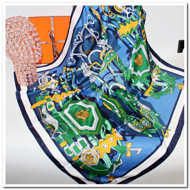 Платок женский Hermes 90 x 90 см синий №9883