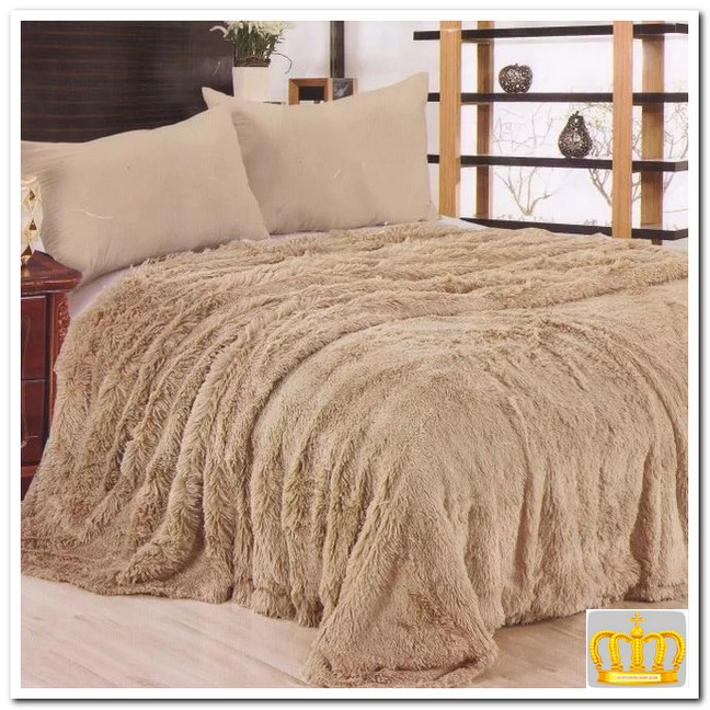 Пушистое покрывало очень шелковистое и приятное на ощупь. Изнаночная сторона - микрофибра.