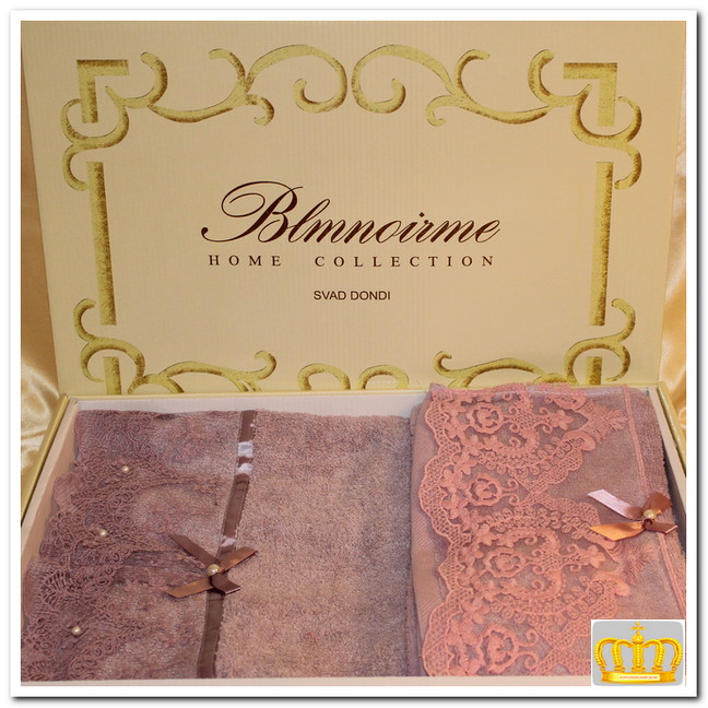 Полотенце махровое "Blumarine" с кружевами 2 шт