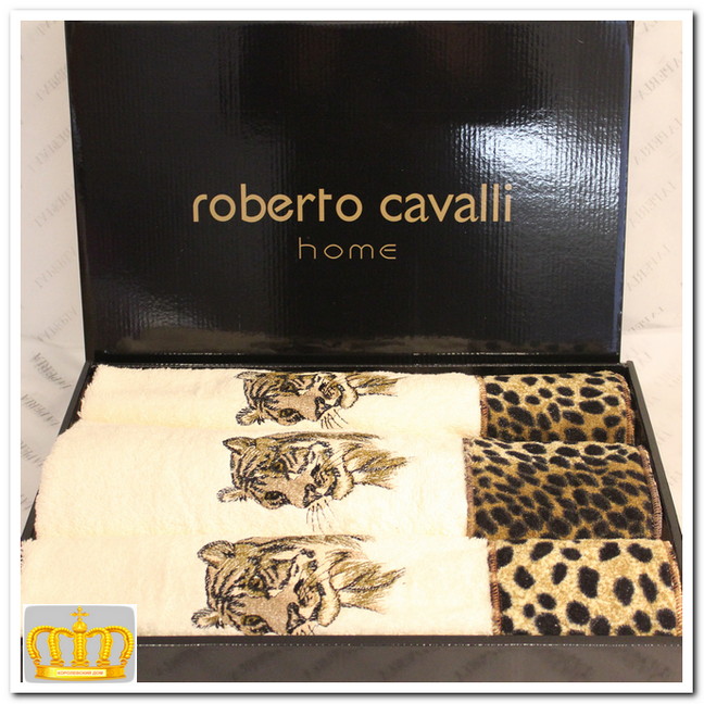 В комплект полотенец   Roberto Cavalli  входит три  махровых полотенца . Полотенца мягкие и приятные на ощупь, обладают превосходными влагопоглощающими свойствами и быстро высыхают. Они имеют оптимальную плотность и длину ворса, что снижает скорость износа. А правильно подобранная расцветка под интерьер ванной комнаты освежит её и внесёт струю новизны. Полотенца  Roberto Cavalli   порадуют самых взыскательных покупателей.
