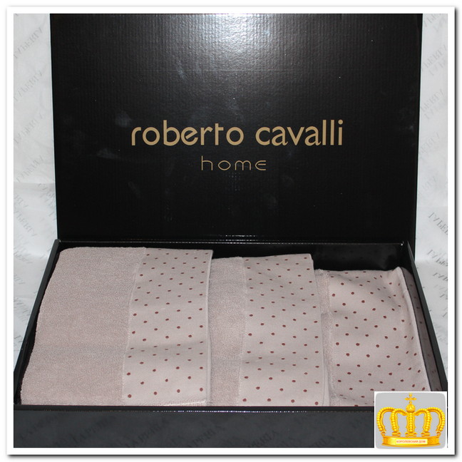 В комплект полотенец   Roberto Cavalli  входит три  махровых полотенца размером 50 x 100 см (2 шт.) и 80 x 150 см. Полотенца мягкие и приятные на ощупь, обладают превосходными влагопоглощающими свойствами и быстро высыхают. Они имеют оптимальную плотность и длину ворса, что снижает скорость износа. А правильно подобранная расцветка под интерьер ванной комнаты освежит её и внесёт струю новизны. Полотенца  Roberto Cavalli   порадуют самых взыскательных покупателей.