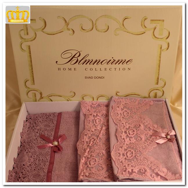 Полотенце махровое "Blumarine" с кружевами 3 шт