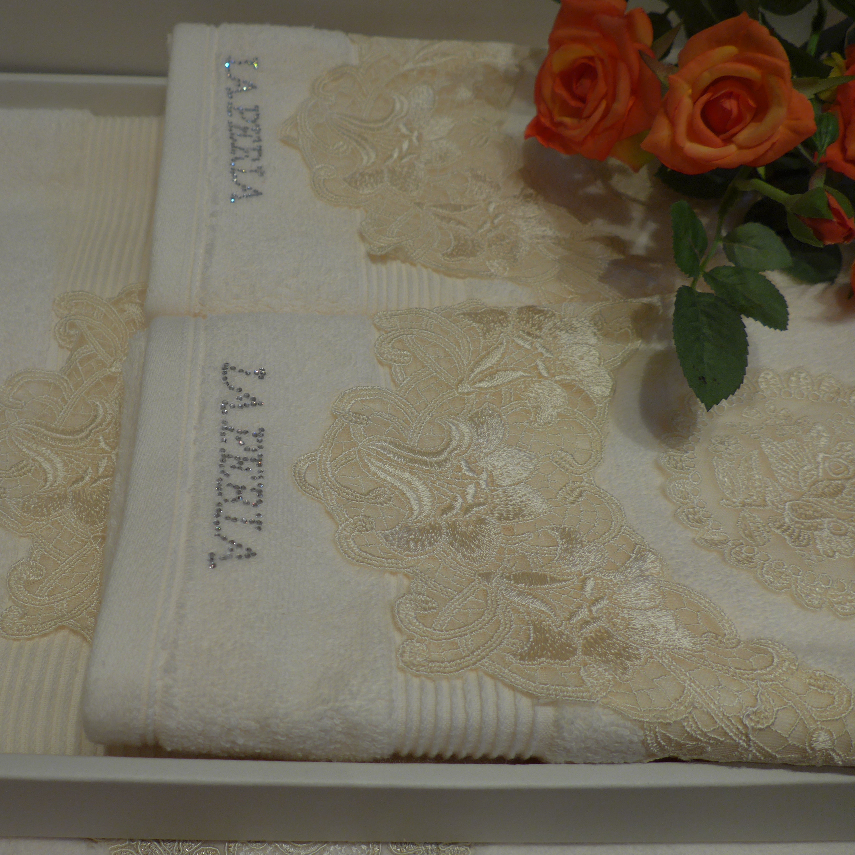 Роскошный комплект махровых полотенец с кружевами