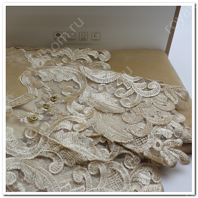 Изысканная скатерть с отделкой по периметру оригинальным широким кружевом - великолепное украшение любого стола и праздника. Скатерть бархатная ,кружева с добавлением нитей люрекса, которые создают неповторимый приятный отблеск и перелив - красиво, дорого, необычно!