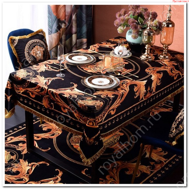 Дизайн скатерти выполнен в фирменном стиле модного дома VERSACE , мастера которого делают акцент на красоте простых вещей.