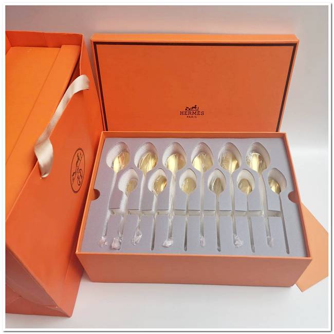 Изысканный дизайн: Каждый прибор украшен утончёнными декоративными элементами и элегантной гравировкой, подчеркивающими престиж бренда Hermes.