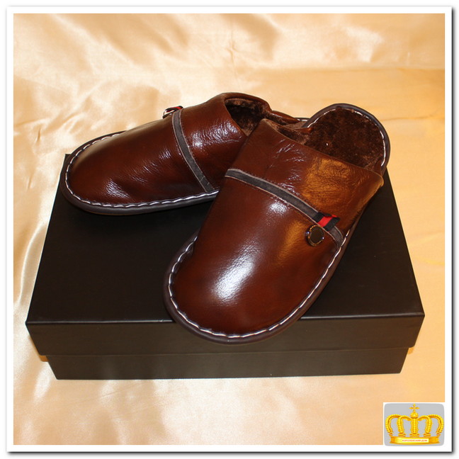 Непромокаемые мужские зимние тапки с толстой подошвой.Домашние тапки из натуральной кожи с плюшевой подкладкой.