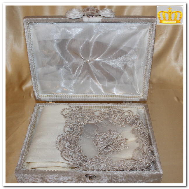 Скатерть с кружевом в бархатной шкатулке Selin Busra gipur 160x220