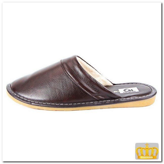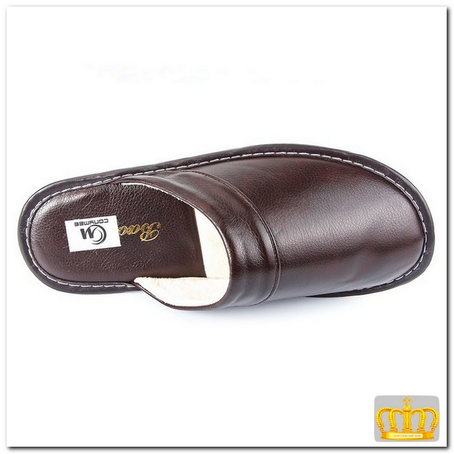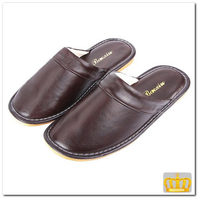 Непромокаемые мужские зимние тапки с толстой подошвой.Домашние тапки из натуральной кожи с плюшевой подкладкой.