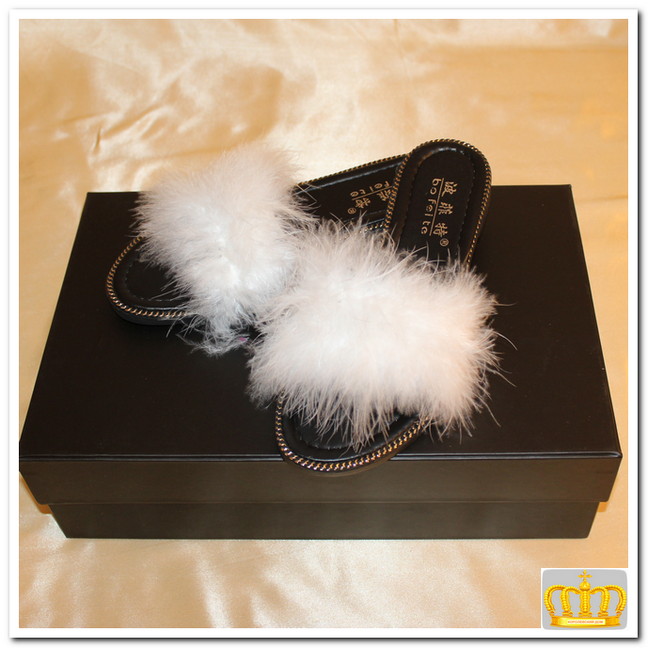 Модные шлепанцы с страусиным пером