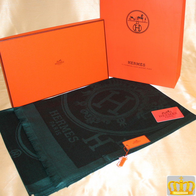 Тёплый палантин Hermes Темно зеленый